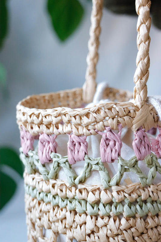 Raffiatasche »rosa Tulpen«